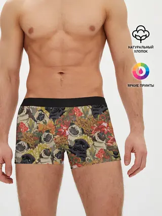 Мужские трусы боксеры / Мопсики | Цветочки