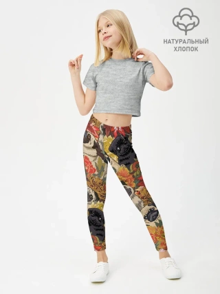 Леггинсы для девочки / Мопсики | Цветочки