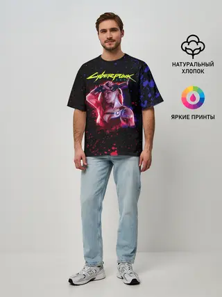 Мужская футболка оверсайз / Cyberpunk 2077 девушка