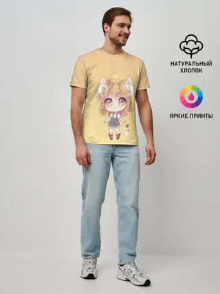 Мужская футболка оверсайз / малышка чиби и цыпленок