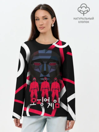 Лонгслив женский. Хлопок / Игра в кальмара -маска ведущего