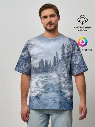 Мужская футболка оверсайз / СНЕЖНЫЙ ПЕЙЗАЖ