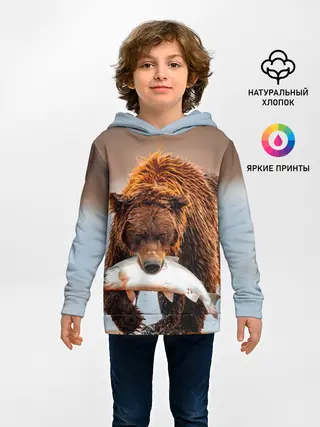 Мужская футболка оверсайз / Медведь с рыбой во рту