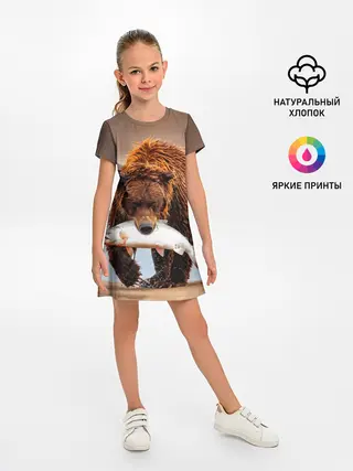 Женская футболка оверсайз / Медведь с рыбой во рту