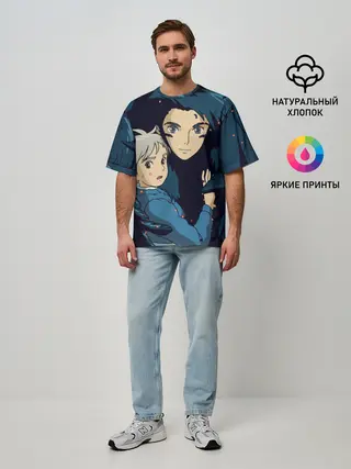Мужская футболка оверсайз / Ходячий замок Софи и Хаул летят