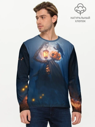 Мужской лонгслив базовый / ТЫКВИННЫЙ МОНСТР В ТУМАНЕ / ХЕЛЛОУИН