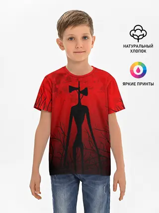 Детская базовая футболка / СИРЕНОГОЛОВЫЙ В ТЁМНОМ ЛЕСУ