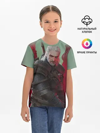 Детская базовая футболка / ВЕДЬМАК | THE WITCHER | ГЕРАЛЬТ С МЕЧОМ