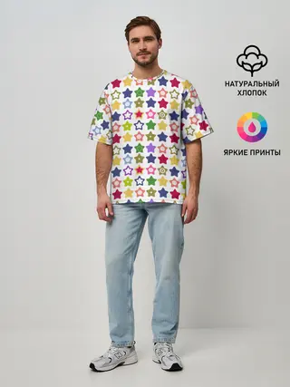 Мужская футболка оверсайз / Разноцветные звездочки