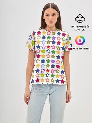 Женская базовая футболка / Разноцветные звездочки