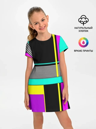 Мужская футболка оверсайз / Геометрический неоновый узор