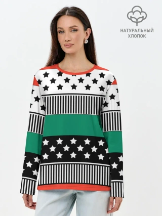 Лонгслив женский. Хлопок / Полосатый звездный узор