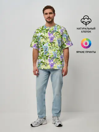 Мужская футболка оверсайз / Глициния на бежевом фоне