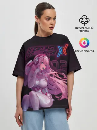 Женская футболка оверсайз / Zero Two в наушниках