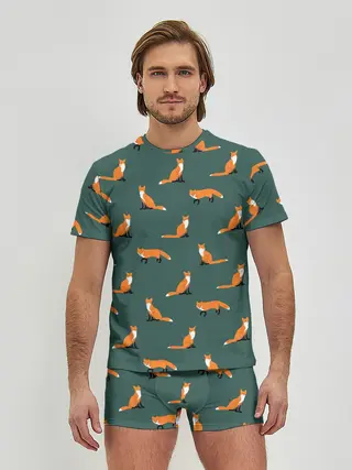 Мужские трусы с футболкой / Лисы паттерн