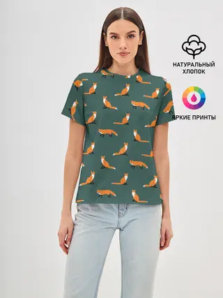 Женская базовая футболка / Лисы паттерн