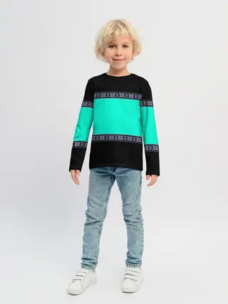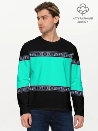 Мужской лонгслив базовый / Черно-бирюзовый узор