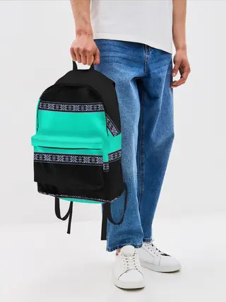 Рюкзак джинсовый / Черно-бирюзовый узор