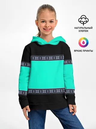 Худи мужской база хлопок / Черно-бирюзовый узор
