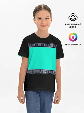Женская футболка оверсайз / Черно-бирюзовый узор