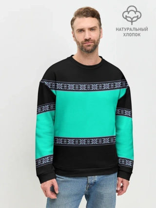 Мужской свитшот базовый / Черно-бирюзовый узор