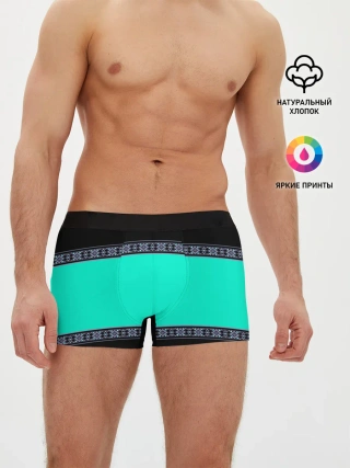 Мужские трусы боксеры / Черно-бирюзовый узор