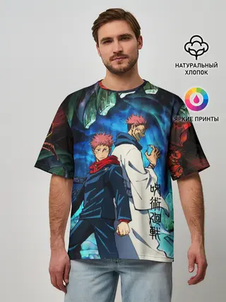 Мужская футболка оверсайз / Магическая битва, Итадори и Сукуна