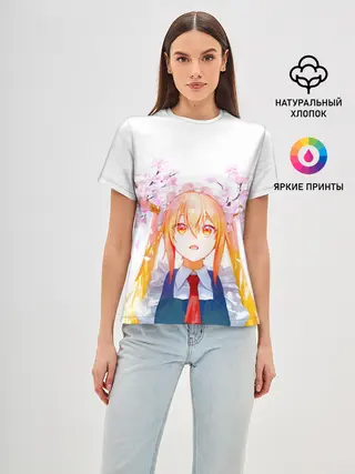 Женская футболка оверсайз / Горничная Мисс Кобаяши расцветает Тору