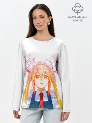Лонгслив женский. Хлопок / Горничная Мисс Кобаяши расцветает Тору