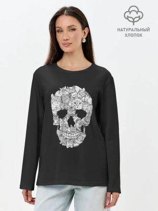 Лонгслив женский. Хлопок / Череп из котов