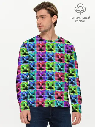 Мужской лонгслив базовый / МАЙНКРАФТ / MINECRAFT ЦВЕТНЫЕ КРИПЕРЫ