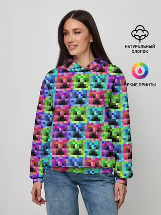 Женское худи / МАЙНКРАФТ / MINECRAFT ЦВЕТНЫЕ КРИПЕРЫ