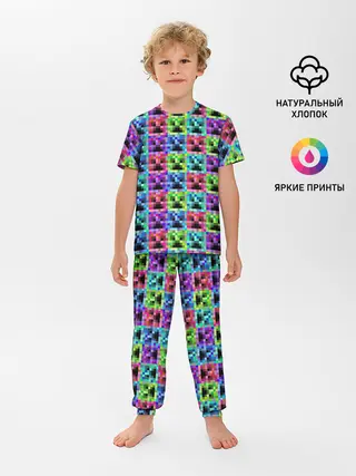 Детская пижама с брюками / МАЙНКРАФТ / MINECRAFT ЦВЕТНЫЕ КРИПЕРЫ