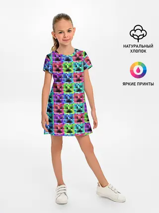 Детское платье / МАЙНКРАФТ / MINECRAFT ЦВЕТНЫЕ КРИПЕРЫ