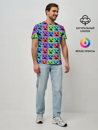 Мужская базовая футболка / МАЙНКРАФТ / MINECRAFT ЦВЕТНЫЕ КРИПЕРЫ