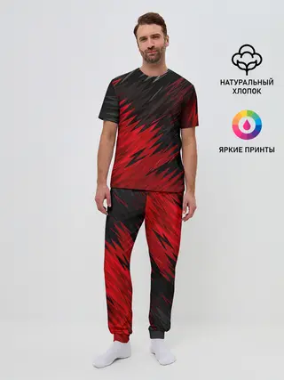 Мужская пижама с брюками / ЧЁРНО КРАСНЫЕ КРАСКИ | RED BLACK STRIPES