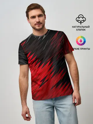 Мужская базовая футболка / ЧЁРНО КРАСНЫЕ КРАСКИ | RED BLACK STRIPES
