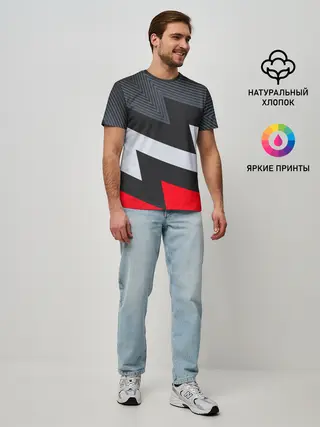 Мужская базовая футболка / Черно-красные зигзаги