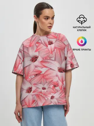 Женская футболка оверсайз / Красные Цветы