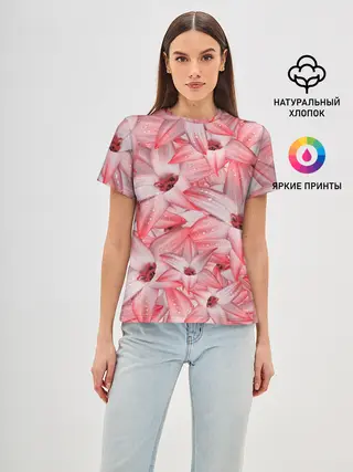 Женская базовая футболка / Красные Цветы