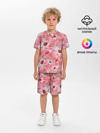 Детская пижама с шортами / Красные Цветы