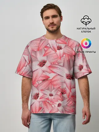 Мужская футболка оверсайз / Красные Цветы