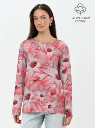 Лонгслив женский. Хлопок / Красные Цветы