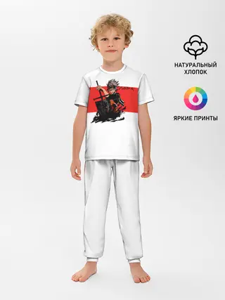Детская пижама с брюками / Чёрный клевер Аста красная полоса
