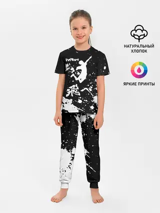 Детская пижама с брюками / Fly High Haikyu!! черно - белый