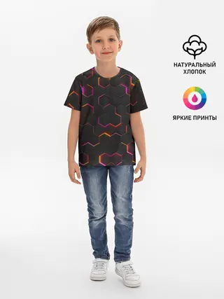 Детская базовая футболка / НЕОН СОТЫ 3D