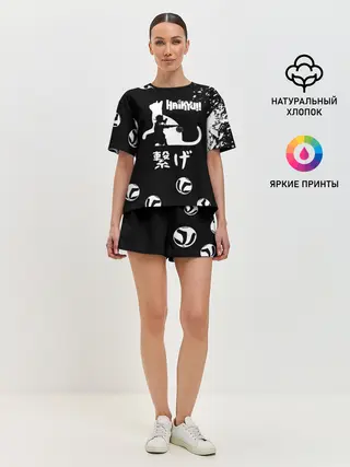 Женская футболка оверсайз / Старшая Некома коты Haikyuu!!