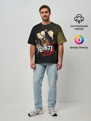 Мужская футболка оверсайз / Танджиро и Незуко Kimetsu no Yaiba