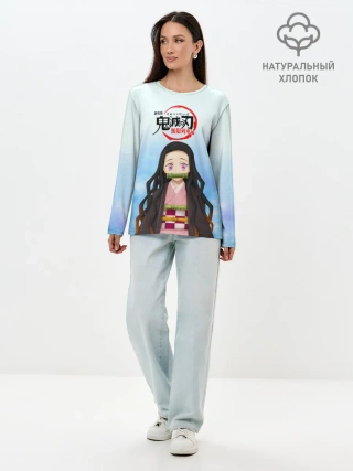 Лонгслив женский. Хлопок / Незуко Камадо Kimetsu no Yaiba