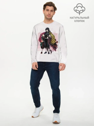 Мужской лонгслив базовый / Гию оберегает Танджиро и Незуко